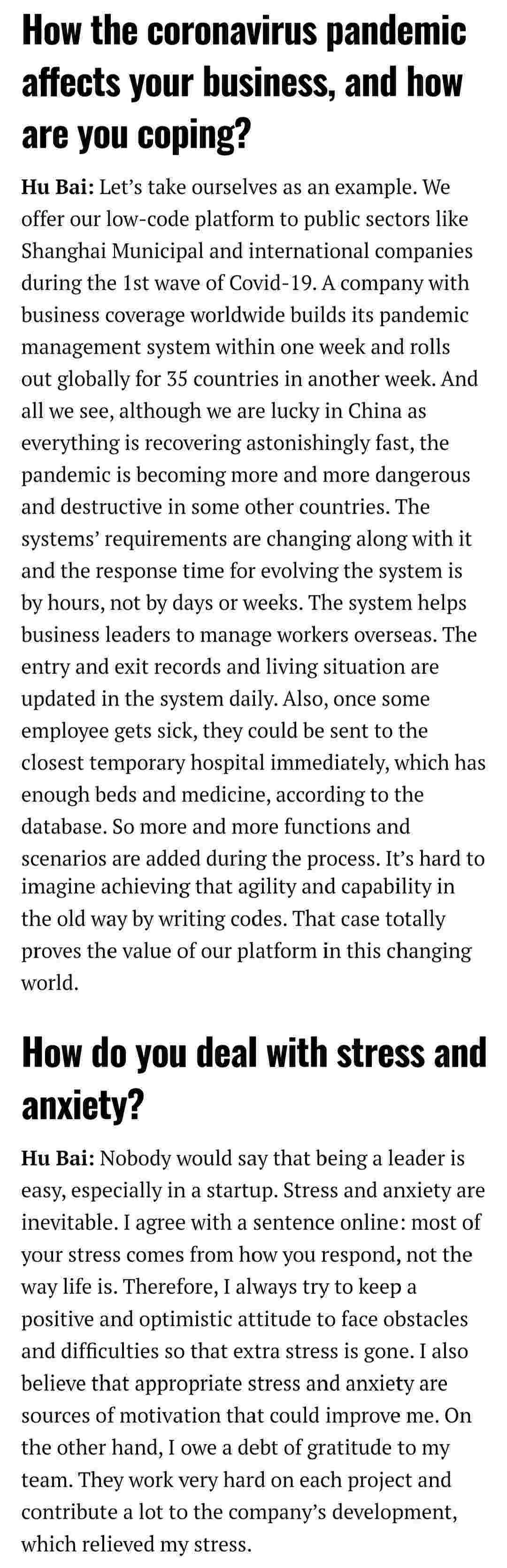 2021年年初,,,,爱湃斯科技CEO胡柏受邀接受法媒Startup.info的专访,,,与Startup info的读者分享了自己的创业经历、、以及低代码平台钱能钱包的创新之处。。。